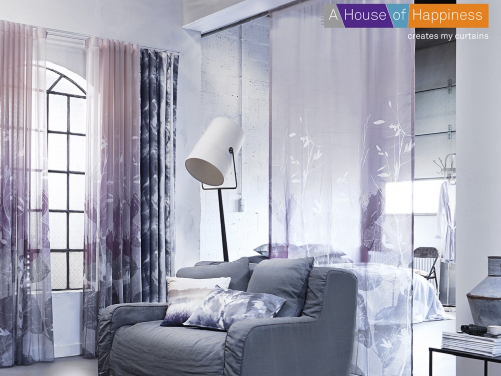 Kürzlich haben wir für einen neuen Auftrag einen ungewöhnlichen und sehr interessanten Voile bearbeitet. Dieser hat ein unregelmäßiges Muster, dass von einem grauen Farbton über Violett bis zu einem hellen Violett übergeht. Die Gardine Waterlily 129 wird in einer Höhe von 300cm mit einem Bleigewicht an dem unteren Rand in zwei Farbvarianten angeboten.