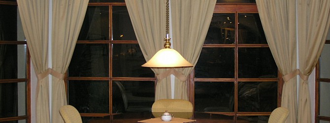 Zum ganz anderen Effekt kommt es bei der Abendbeleuchtung. Hier ist alles abhängig von der Belichtungsstärke. Beim dezenten Schein der Tischlampe tritt die Vorhangfarbe in den Hintergrund. Auch satte und lebhafte Farbtöne wirken abgeblendet, kräftige Farben sind weniger intensiv und dunkle Vorhänge fallen noch dunkler aus. Wenn wir das ganze Interieur anleuchten, beziehungsweise die Kombination von Decken- und Wandleuchten benutzen, erstrahlt auch die Vorhangfarbe und die Vorhänge überraschen uns möglicherweise durch ganz unerwartete Formen.